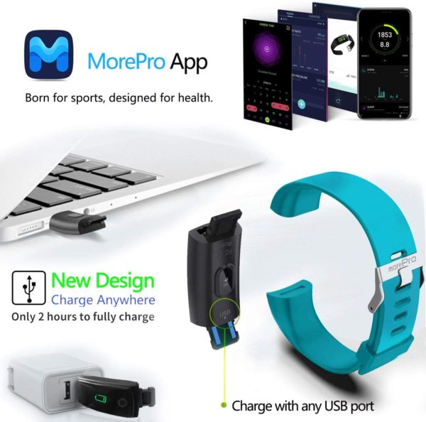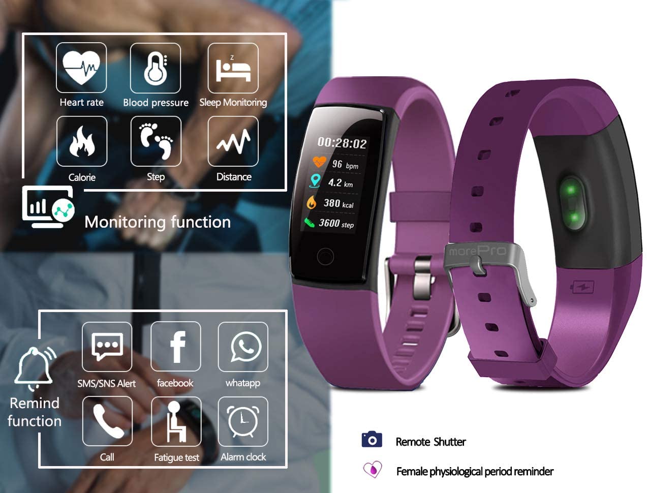 Waterproof Health Tracker,MorePro Fitness Tracker Color Screen Sport Smart Watch,Activity Tracker with Heart Rate Blood Pressure Calories Pedometer Sleep Monitor Call/SMS Remind for Smartphones Gift.